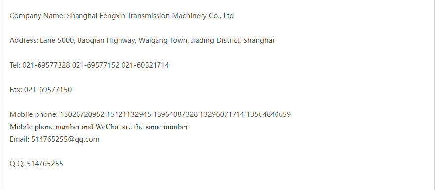 Company Name: Shanghai Fengxin Transmission Machinery Co., Ltd